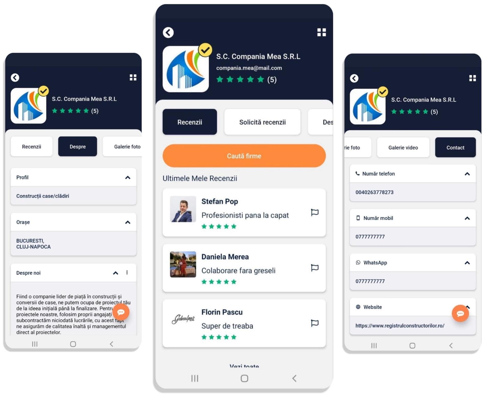 Profilul tău de pe platforma noastră te ajută să fii găsit și te ajută să prezinți credibilitatea afacerii publicului țintă. Profilul te face sa ieși în evidență față de concurență și este o modalitate de a interacționa cu oameni care devin adesea conexiuni și clienți valoroși.